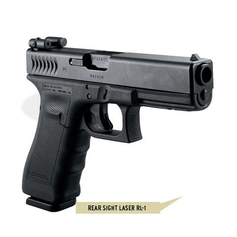 The RSL fits all Glock® pistols and is constructed from MIM 4650, nickel enriched high carbon steel, the same material used for most heavy-duty gun parts such as iron sights, hammers and levers. It is also black oxide, bead blasted for a non-reflective finish. When mounted onto the pistol the RSL will fit all Level 1 and 2 holsters. Powered by four 377 batteries, commonly used in watches. LaserLyte also offers discounted batteries. Rear Sight Lasers for additional pistol models will be introduced later this year.
